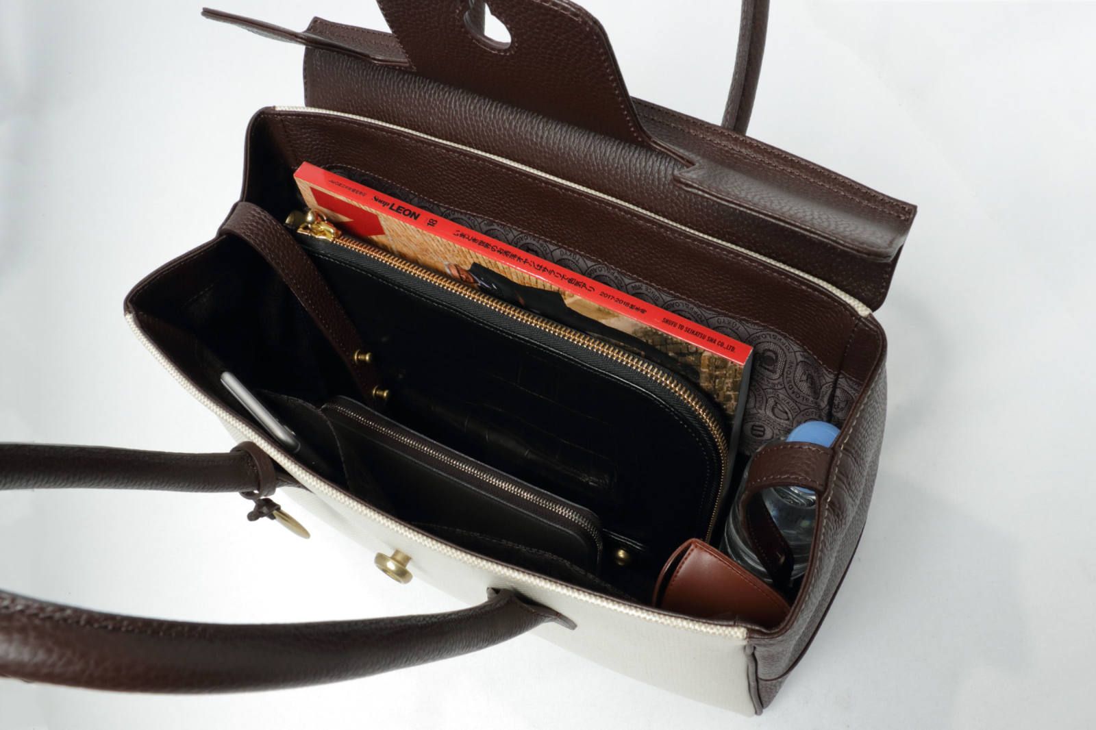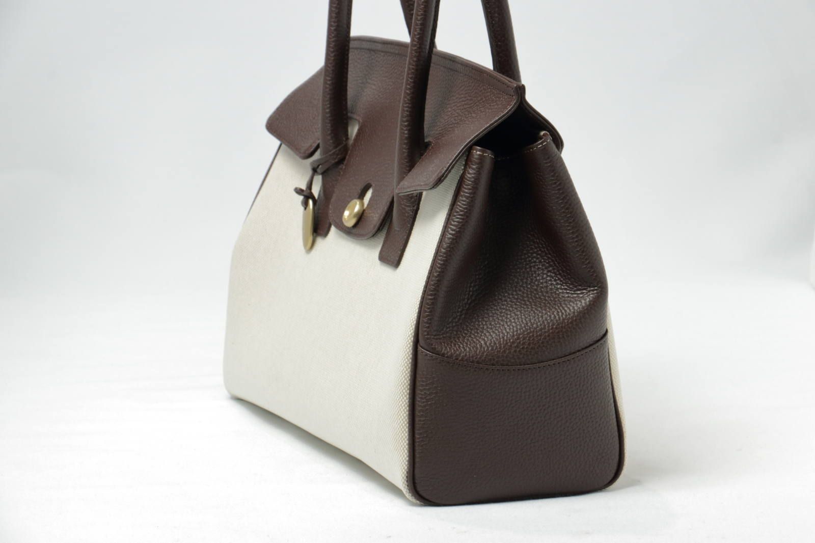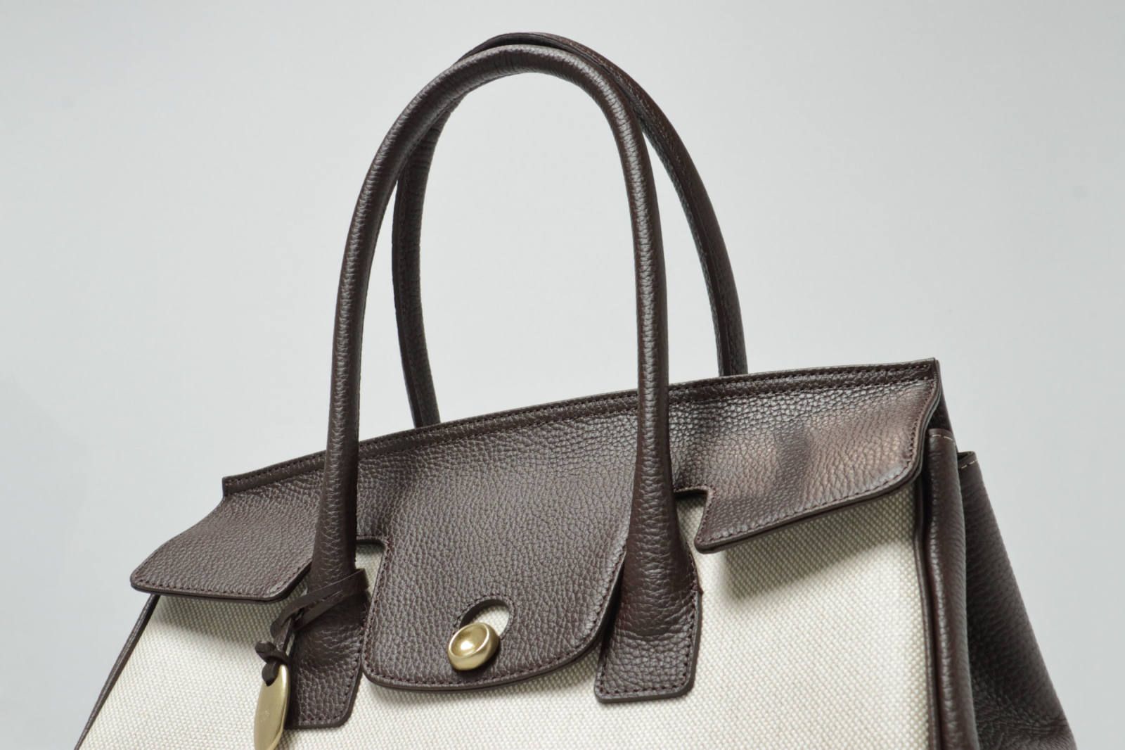 フラップやハンドル部のフチは、丁寧なヘリ返しで仕上げるなど、些細なこだわりから品の良さが醸し出されます。