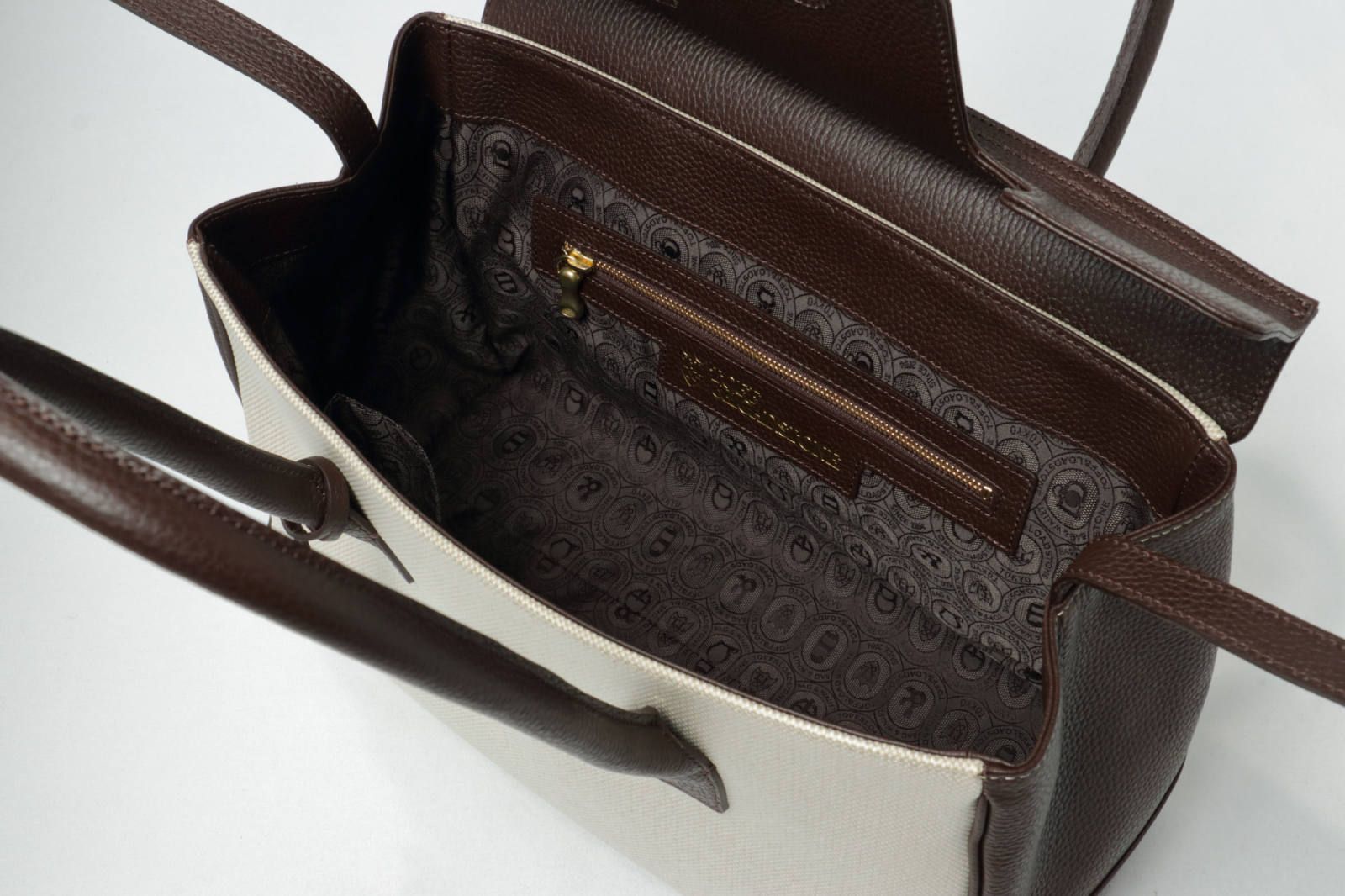 ライニングにはブランドのロゴをあしらったジャガードナイロン生地がが使用されています。この点も高級感が増すポイント。