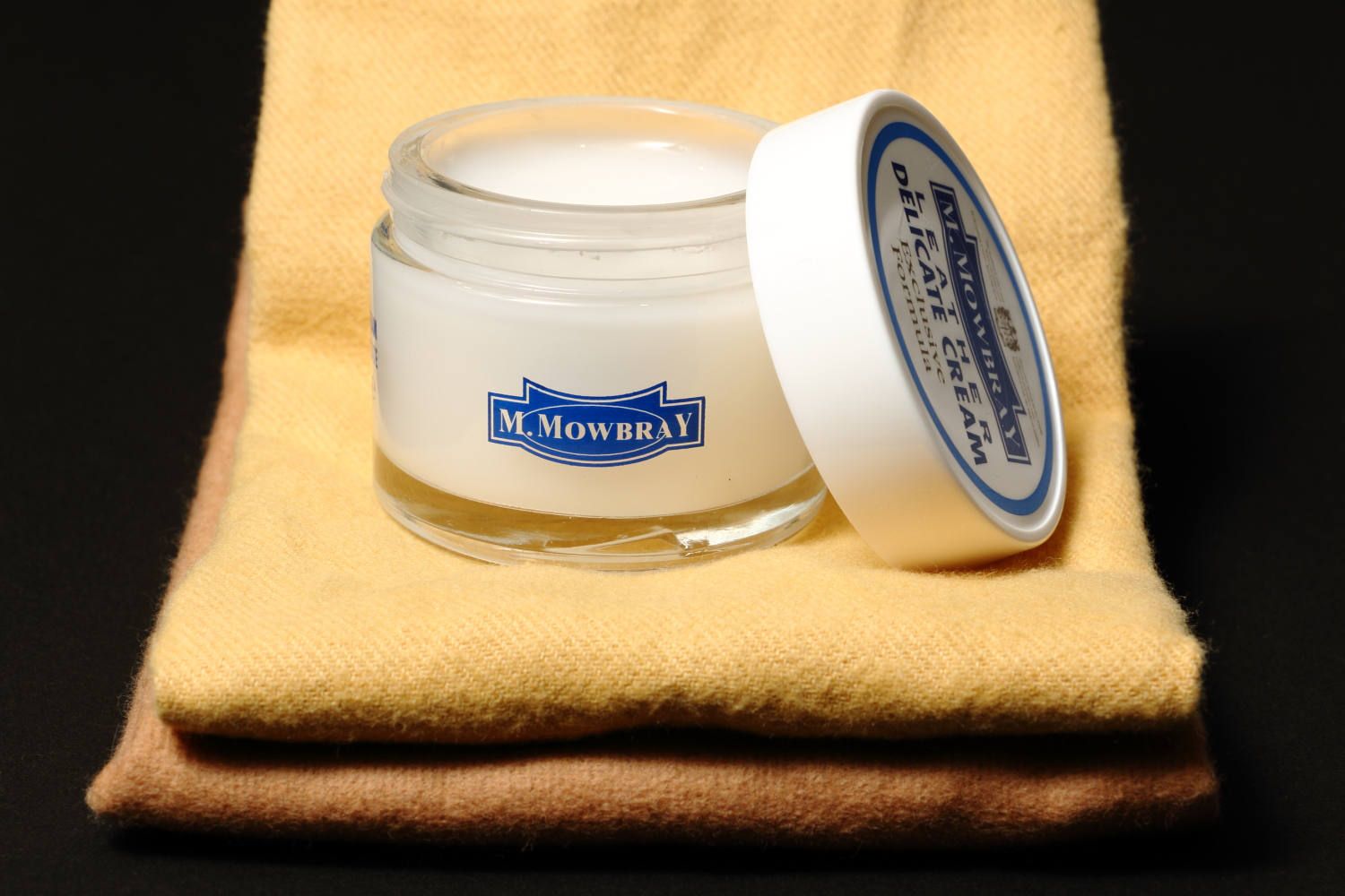 普段のお手入れ後、BEKKU HOMMEで推奨しているデリケートクリームを、乾いた布(目の詰まっているもの)に適量取り、バッグ全体に塗りこんでいきます。この時のクリームの量は薄く満遍なく塗るのがお勧めです。塗る量が多く、革の一点に塗ってしまうと、逆にシミなどのトラブルになる事もありますので、少量のクリームを優しく塗りこんであげて下さい。