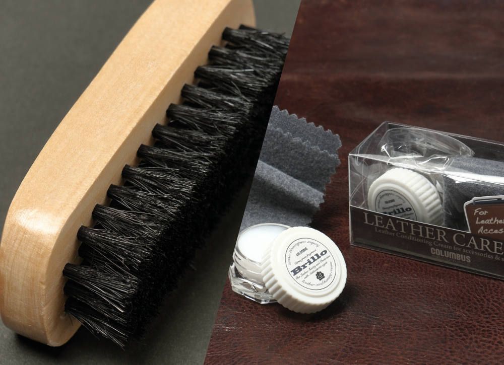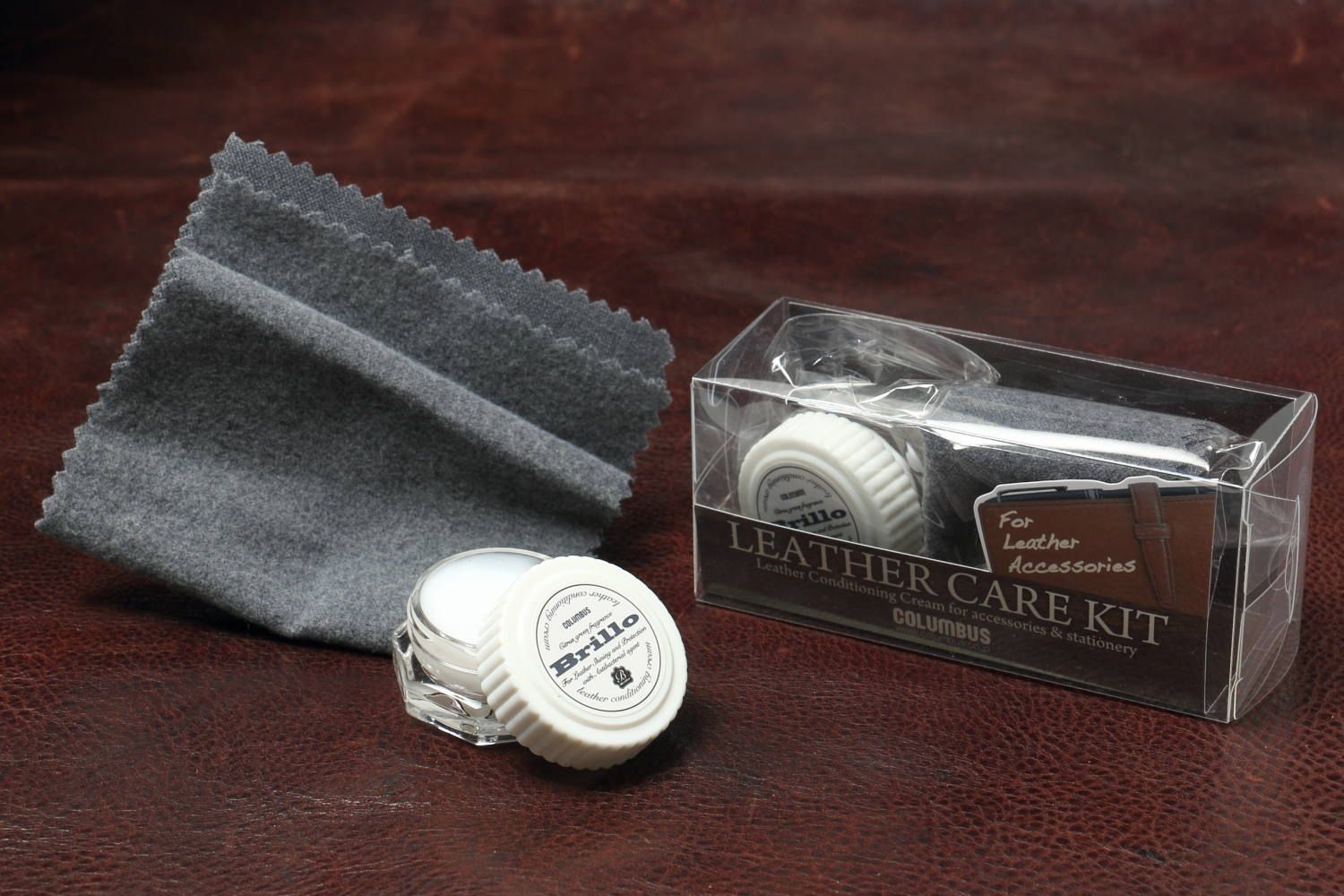 クロスとレザーコンディショニングクリームがセットになったレザーケアキット※レザーケアキットをご使用いただけるのはレザー製のアイテムのみとなります。