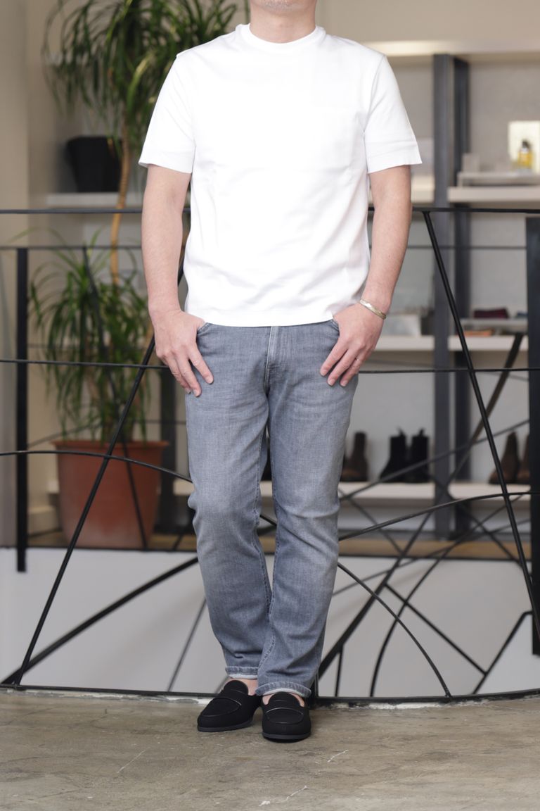【サイズ54まであり】12G ハイゲージ ソフトコットン ソリッドクルーネック ニットTシャツ/ ホワイト