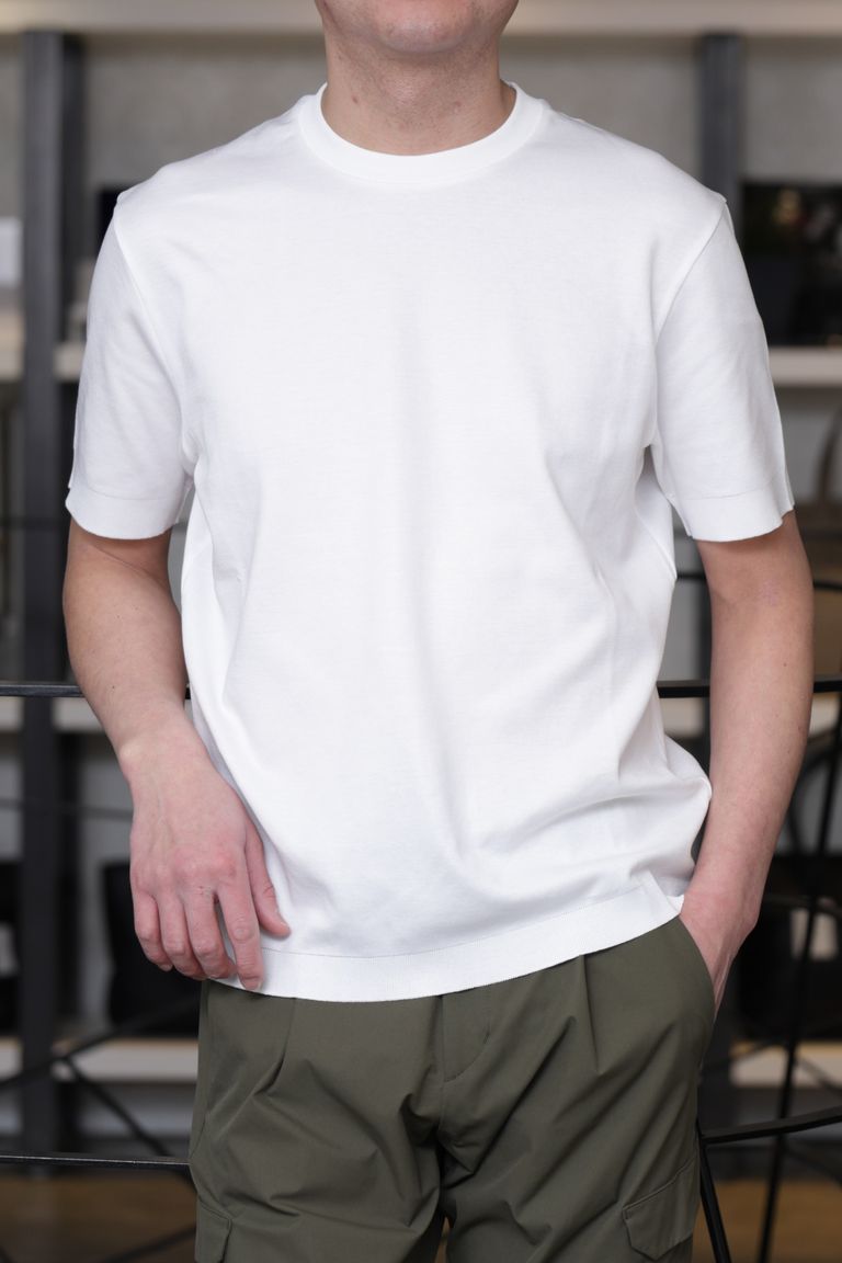JG000206U ジャージニットエフェクト コットン クルーネック Tシャツ / ホワイト 1000