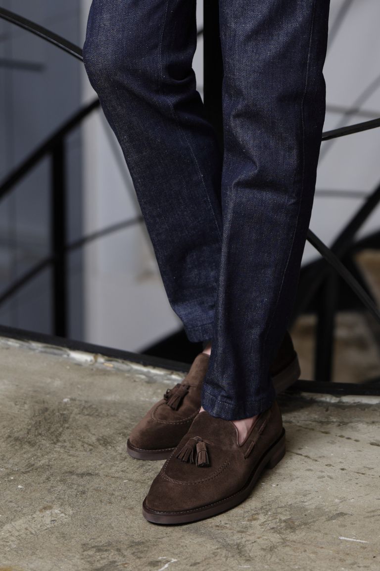 【ふにゃ男シリーズ】ヤヌスカーフ スエード タッセルローファー シューズ 革靴 / ブラウン COFFEE