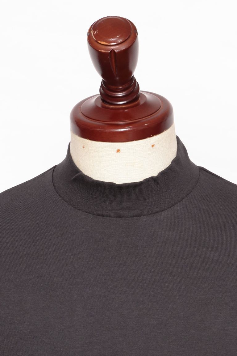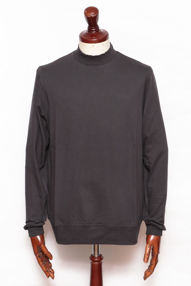 【サイズ50まで】FIANO LUNGO コットン モックネック 長袖 カットソー / チャコールグレー 899