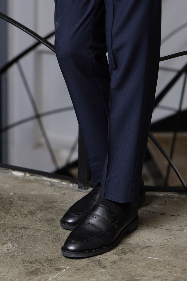 【ふにゃ男シリーズ】柔らかい革 フンシャルカーフ コインローファー シューズ 革靴 / ブラック