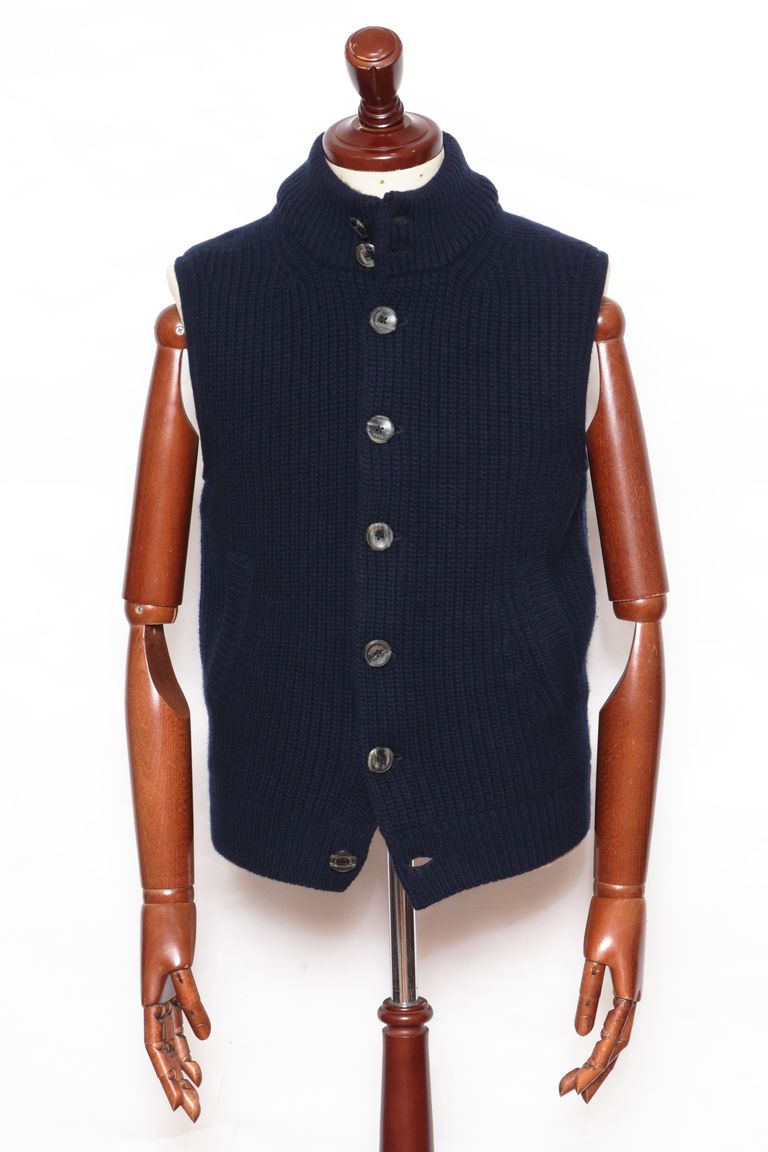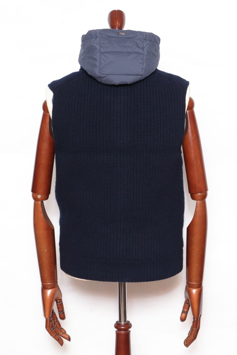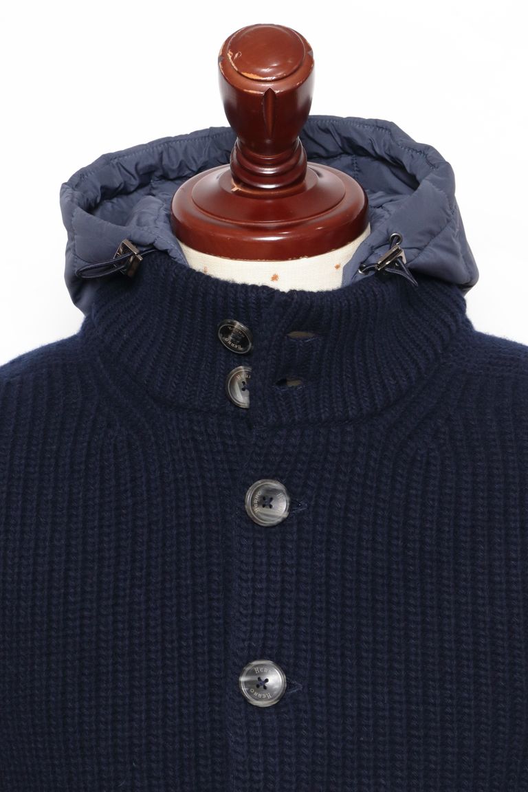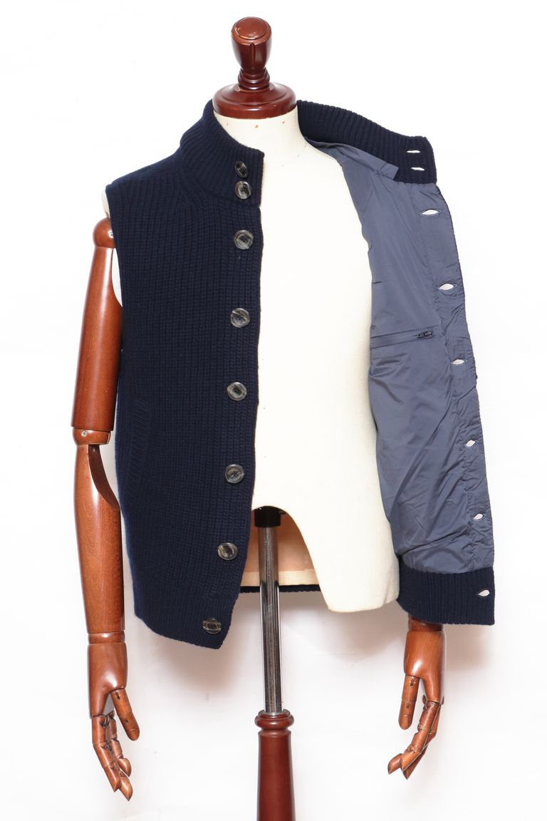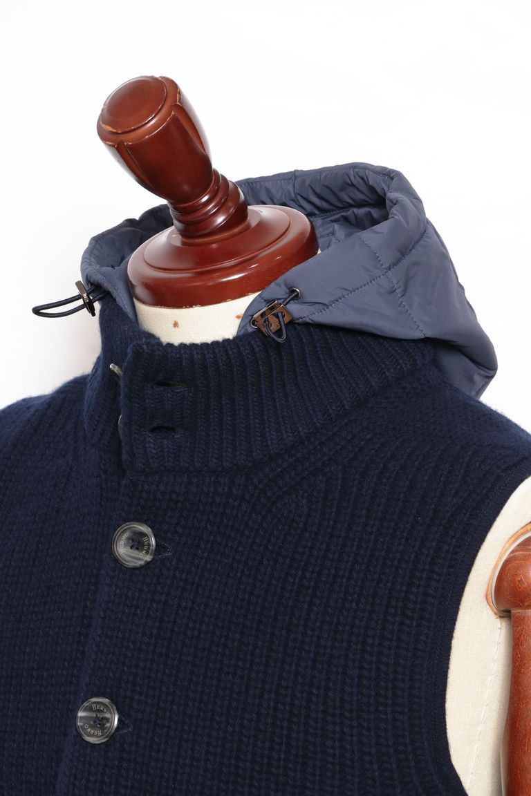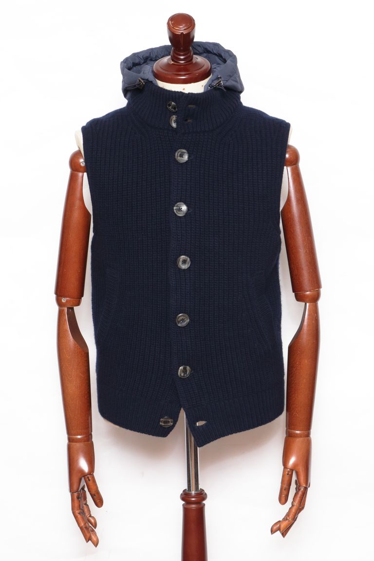 MC009UR フーデッド ハイブリッド ローゲージニット ベスト / ネイビー 9230
