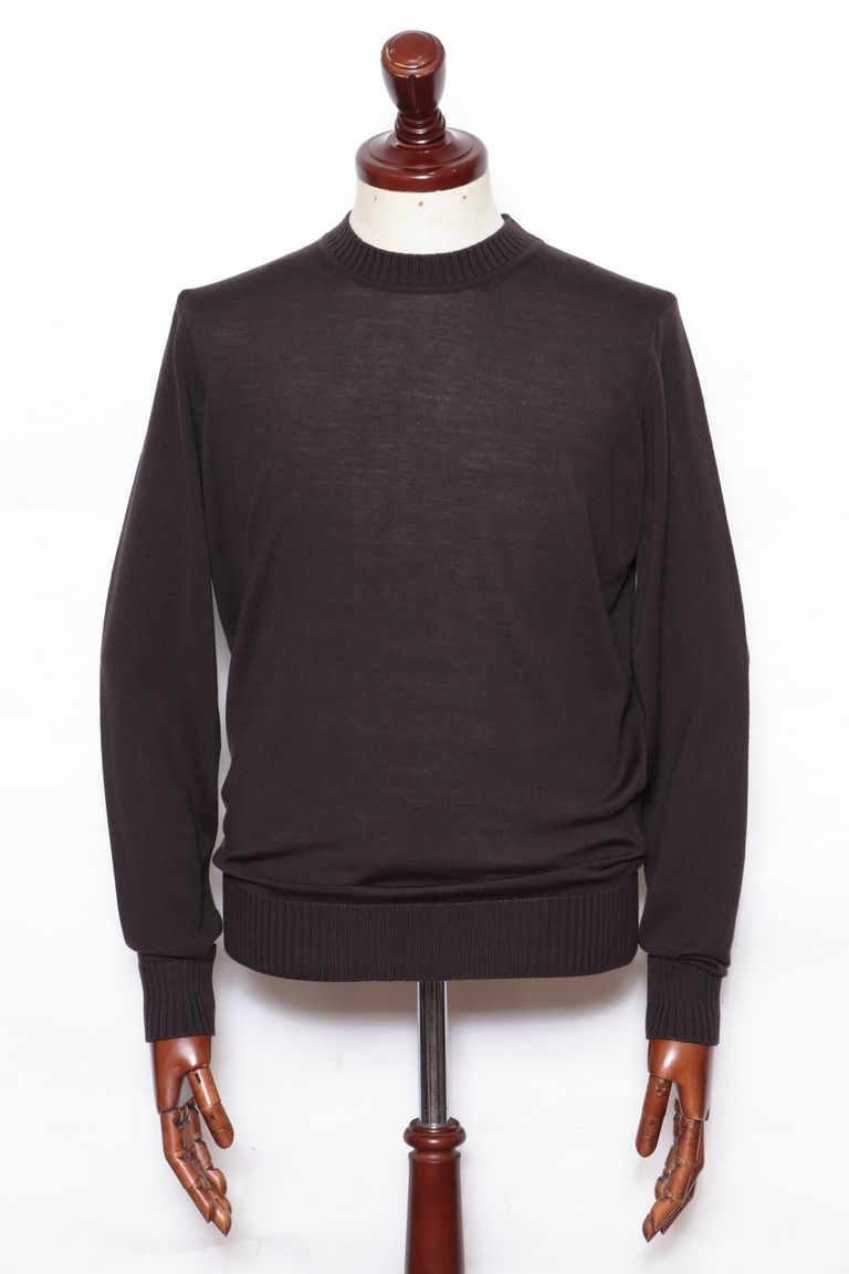 GC3ML RM16R ロイヤルメリノウール ハイゲージ リブ クルーネック ニット / ダークブラウン