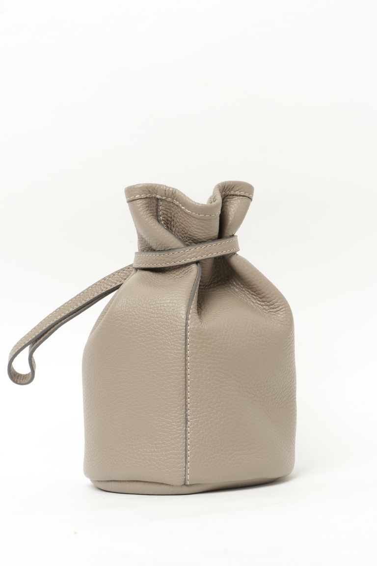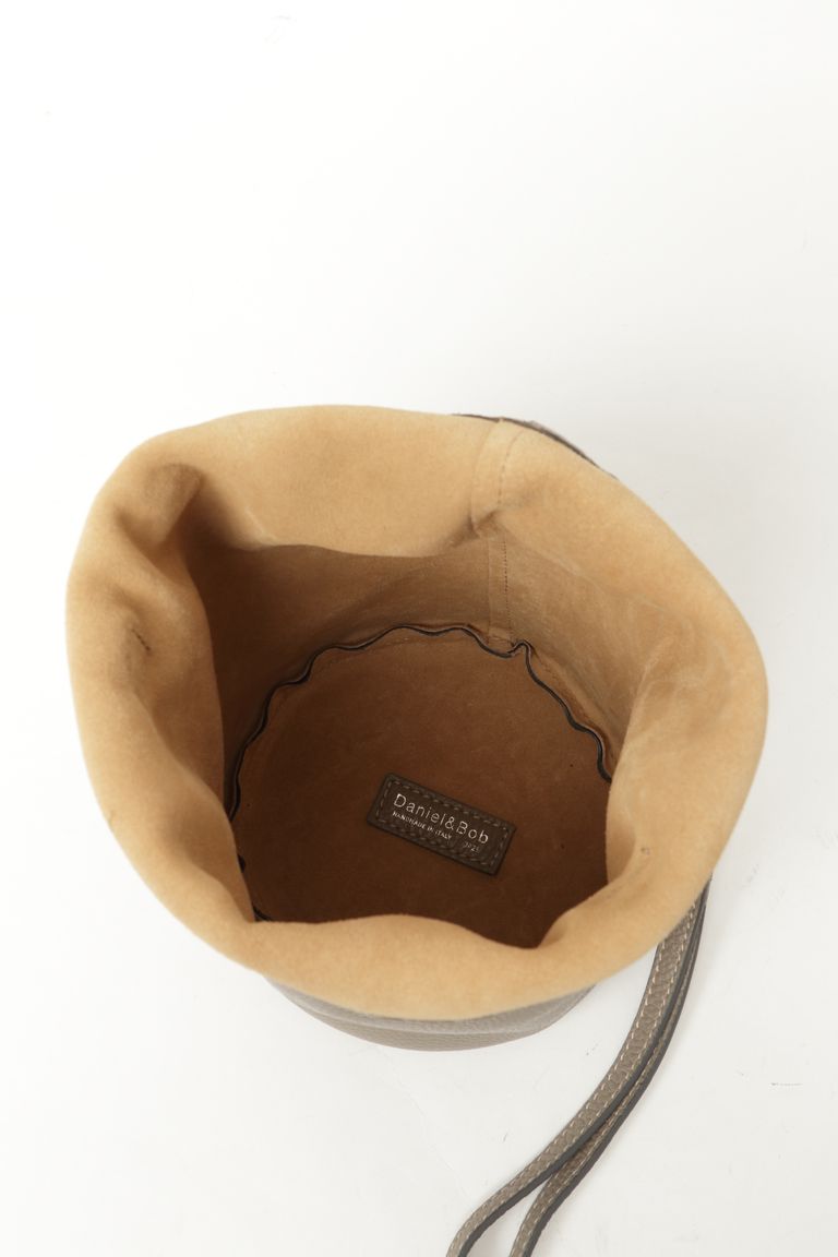 P. SACCA-14 ALCE accopiato 巾着レザーミニバッグ / トープ 91