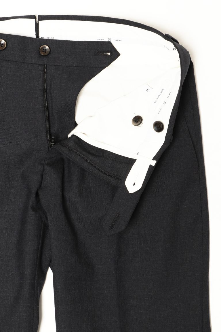 【SUPER SLIM FIT】TRAVELLER ウォッシャブルライトテクノウール ストレッチ サージ ノープリーツドレスパンツ / チャコールグレー