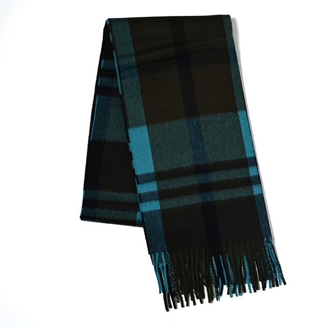 CPG52528 カシミア ブロックチェック ストール 50 x 190 / カーキ x ブルー チェック