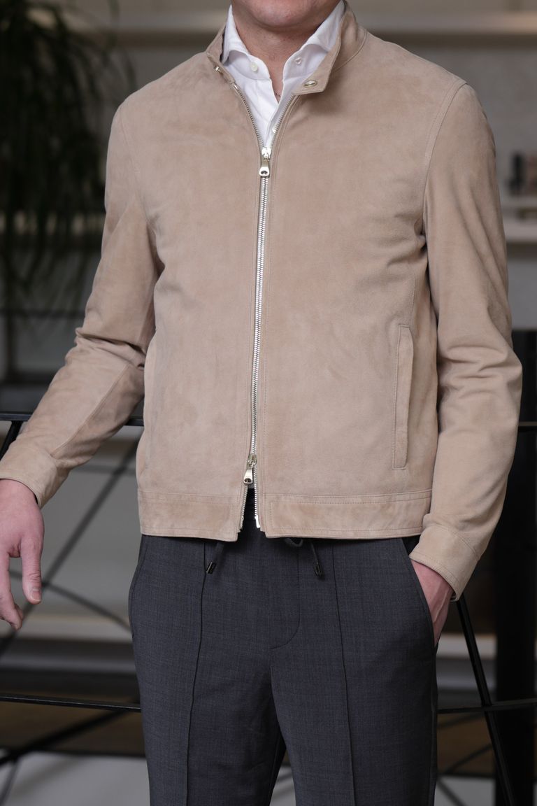 サイズ52まで JURI CAMOSCIO ゴートスエード シングル ライダース レザージャケット / SABBIA ベージュ