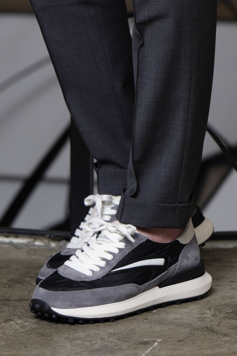 Athleta ナイロン × スウェード ランシュータイプ スニーカー / ブラック × グレー