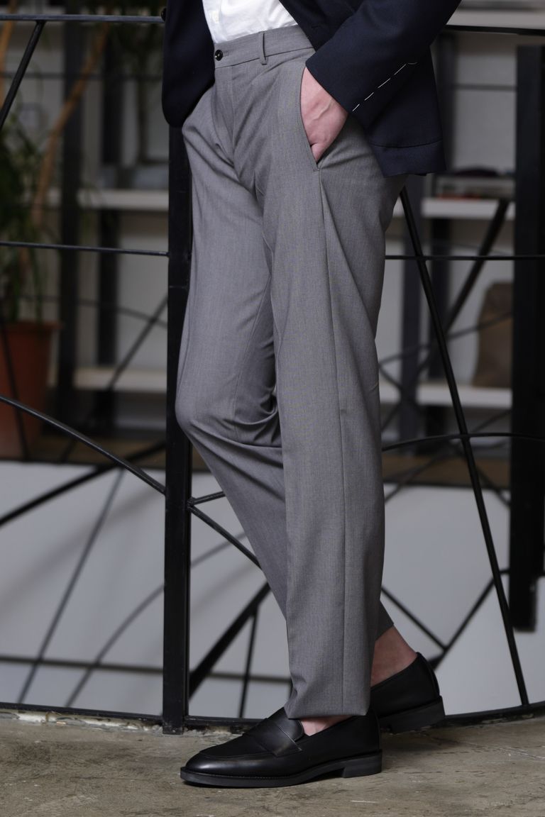 サイズ52まで ACTIVE ウール調 ポリエステル ストレッチ ノープリーツ ドレスパンツ / ライトグレー