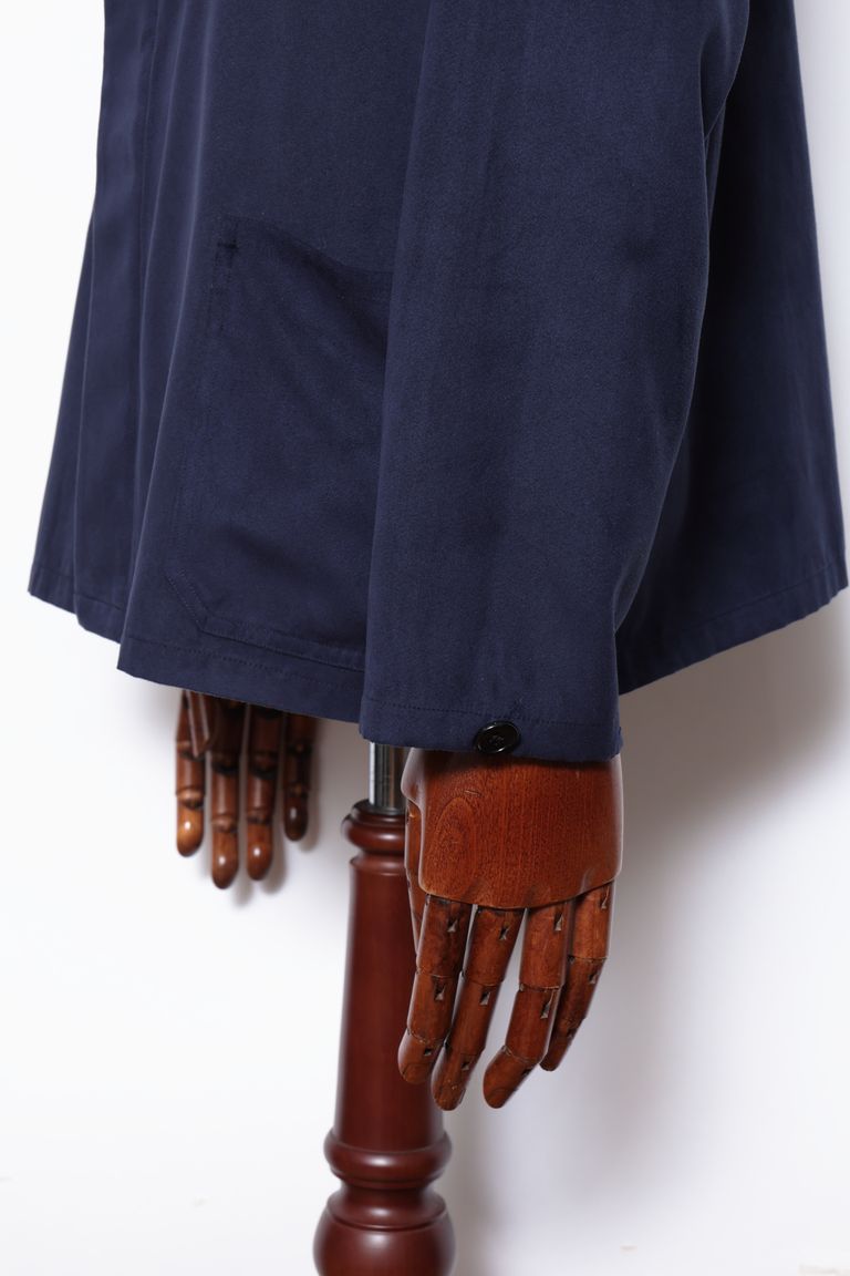 春夏シーズンに適した軽さを追求し、一枚仕立てで設計することで、身体に自然になじむ快適な着心地を実現。素材には超極細のポリエステル糸を使用し、薄く繊細に織り上げた生地を、下地が見えないほど丁寧に起毛しています。さらに溶剤洗いを施すことで、非常に滑らかで奥行きのある風合いに。