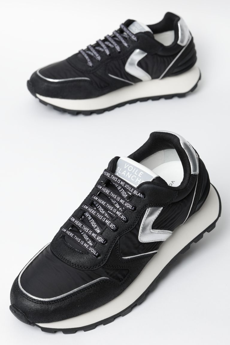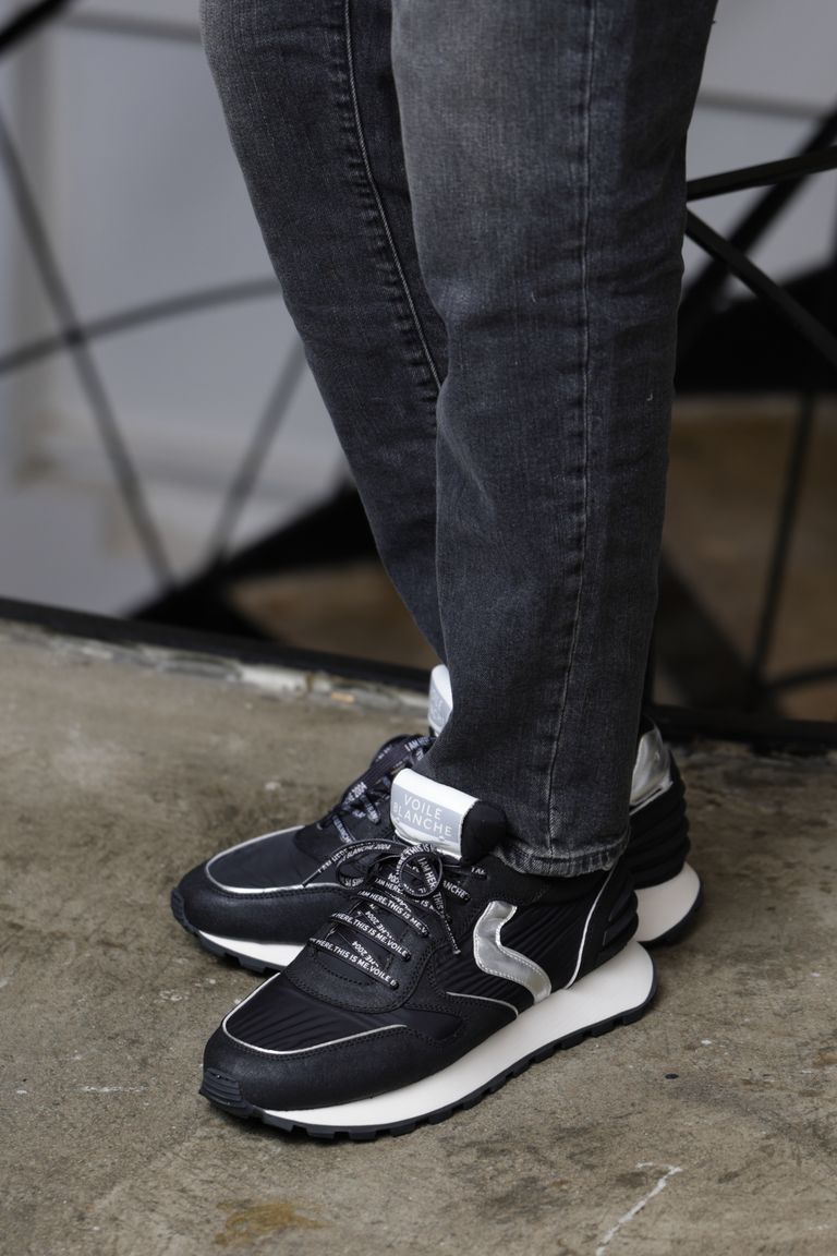 PARIS POWER ナイロン × スエード スニーカー / ブラック × シルバー
