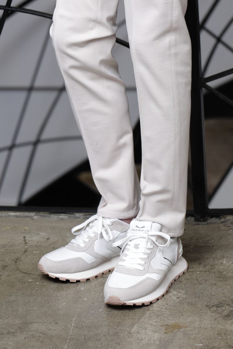PARIS POWER レザー × ナイロン スニーカー / ホワイト × グレー