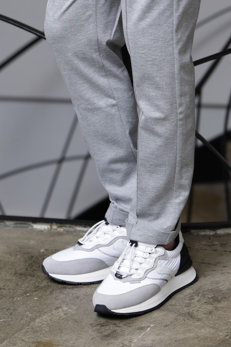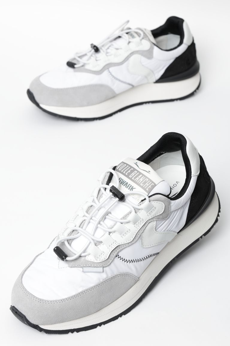 QWARK EASY ナイロン × スエード クイックシューレース ローカットスニーカー / ホワイト × ブラック