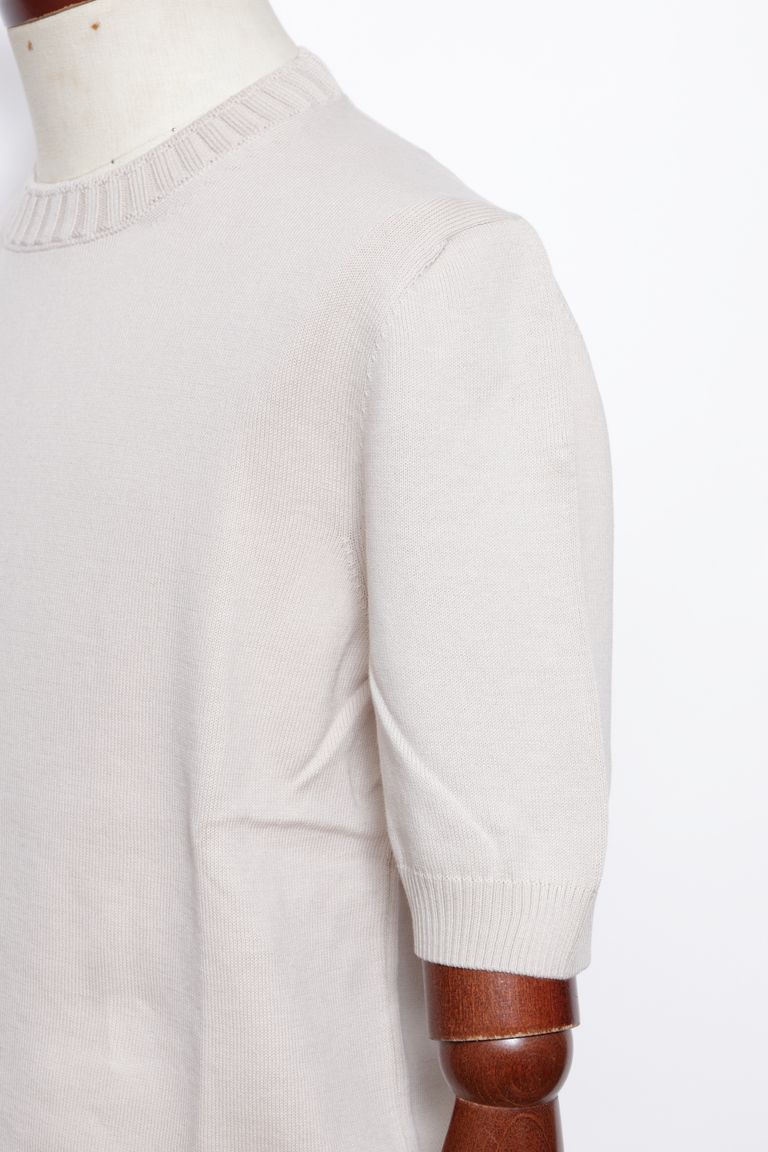 14ゲージ ソフトコットン クルーネック半袖ニット / ベージュ 12