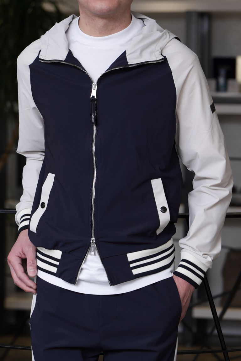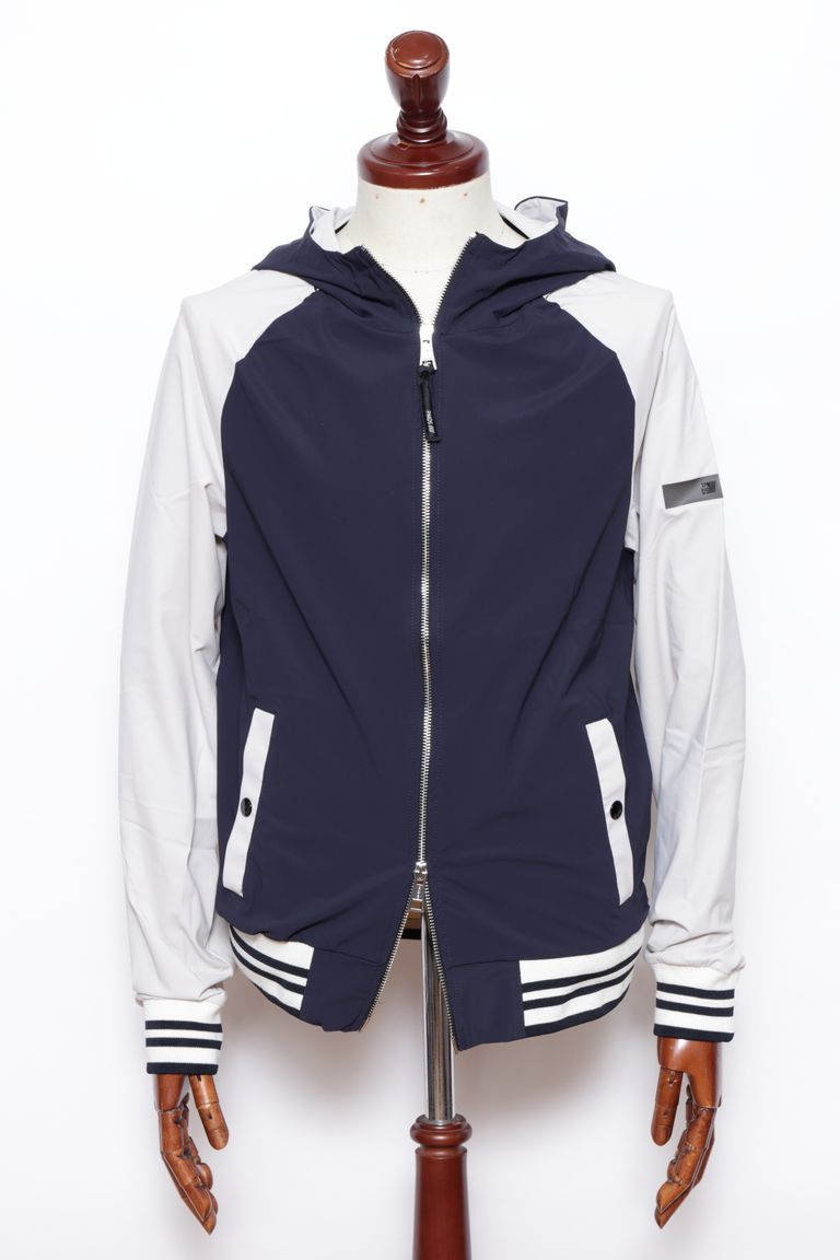 【セットアップあり】TITTI FL ハイパーストレッチ ジップアップ パーカー / ネイビー × オフホワイト