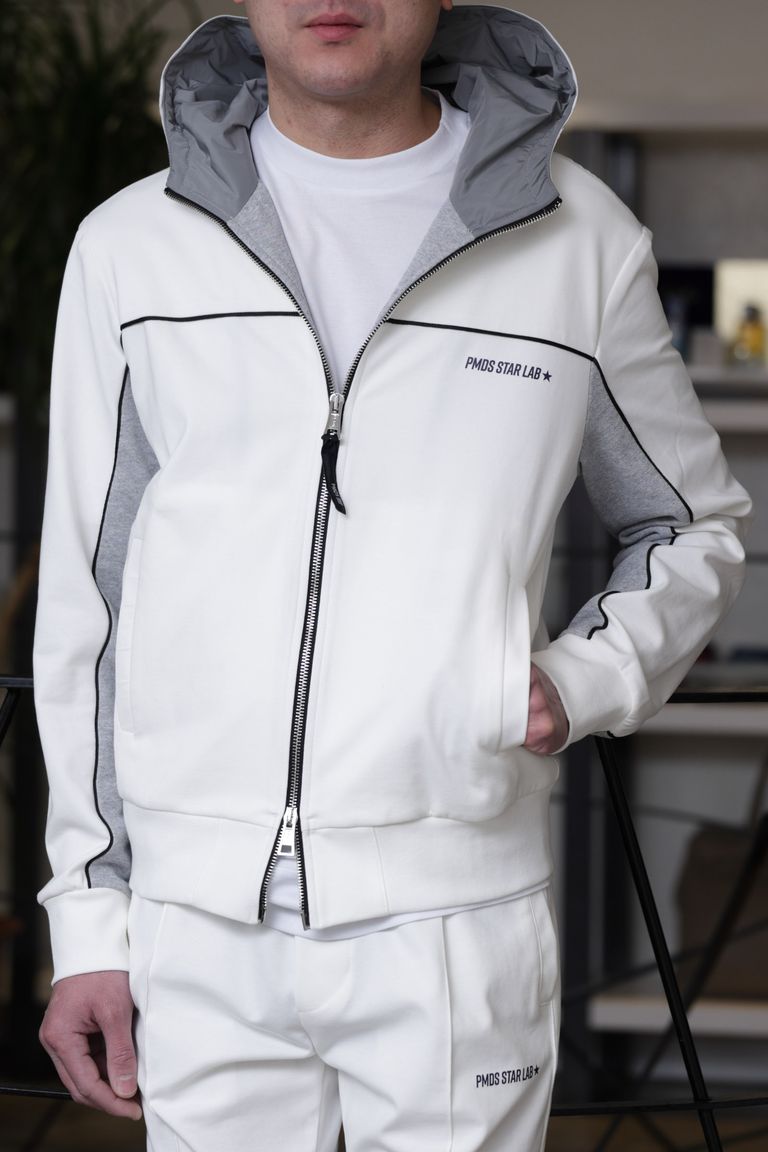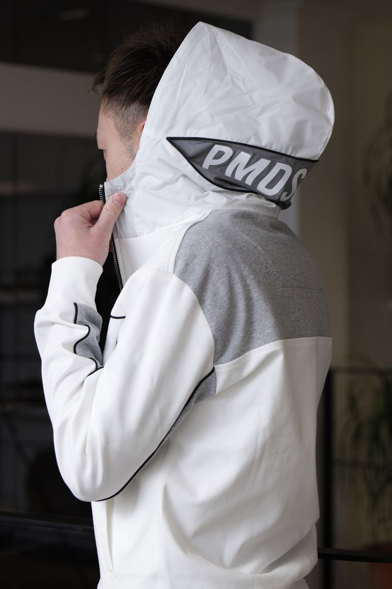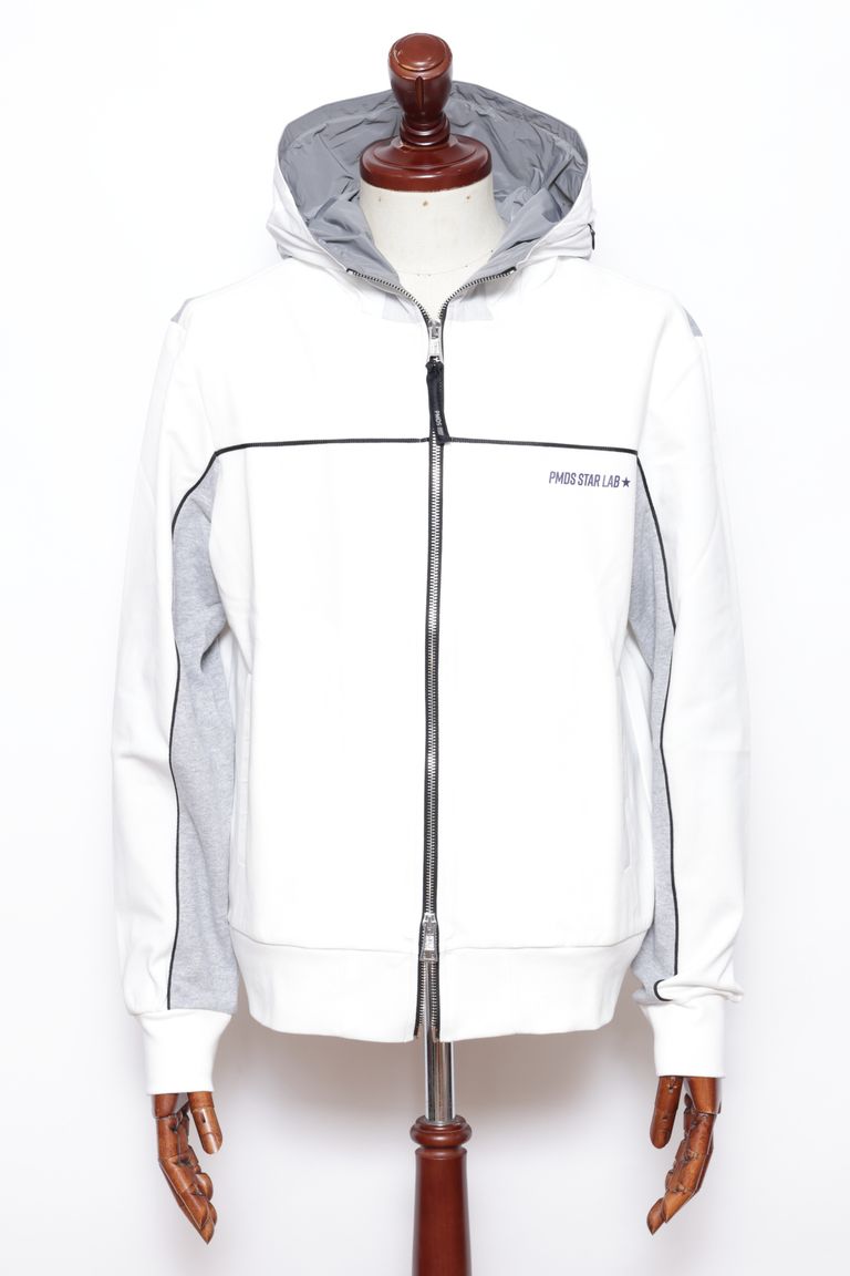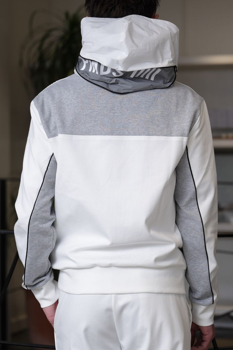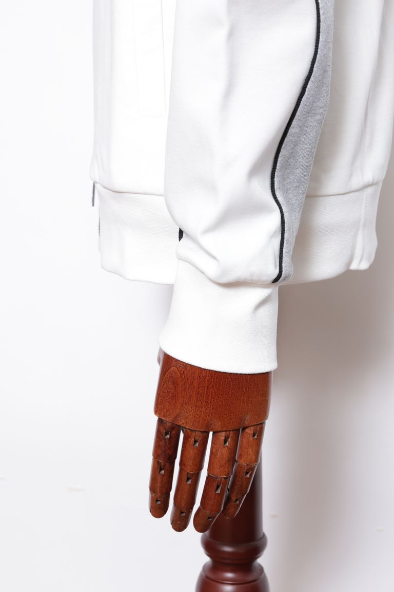 【セットアップあり】ABEL ストレッチジャージ スウェットコンビ ワンポイントロゴ ジップアップ パーカー / ホワイト × グレー × ブラック