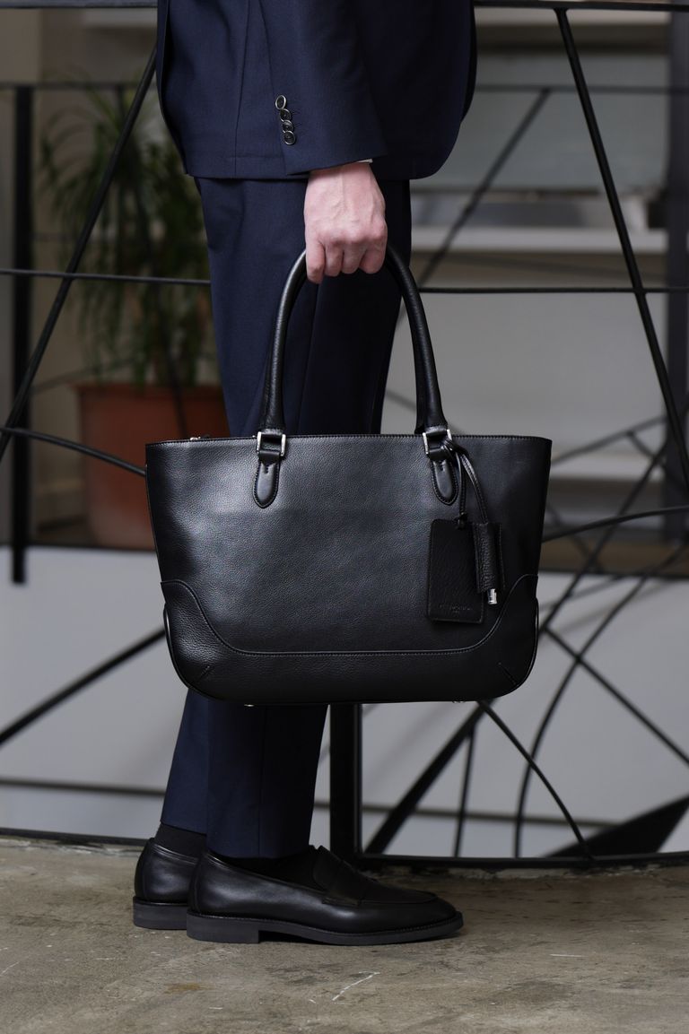 Maiden Voyageシリーズ メイデン ヴォヤージュ 薄マチ シュリンクレザー トートバッグ / チャコールグレー