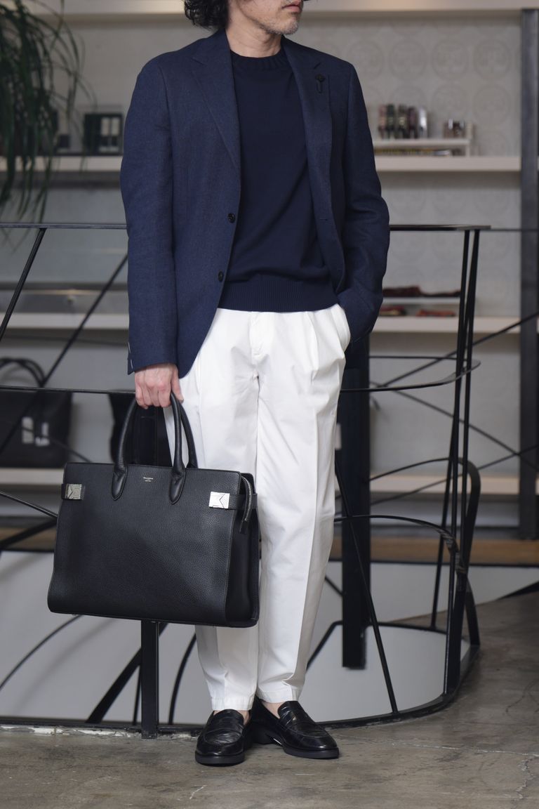 【干場氏モデル】PORTOBELLO コットン ボックスプリーツ テーパードパンツ / ホワイト 5120