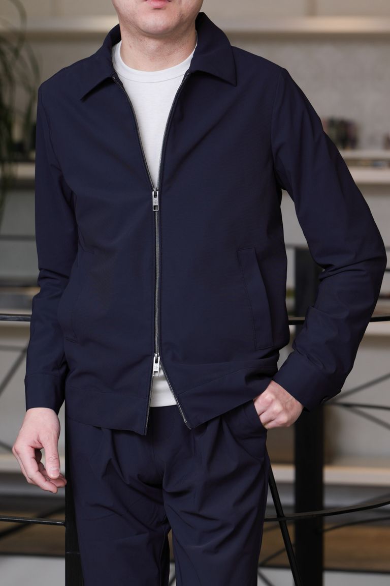 【セットアップあり】ストレッチ ナイロン ジャージ アビエイター ジャケット / ネイビー