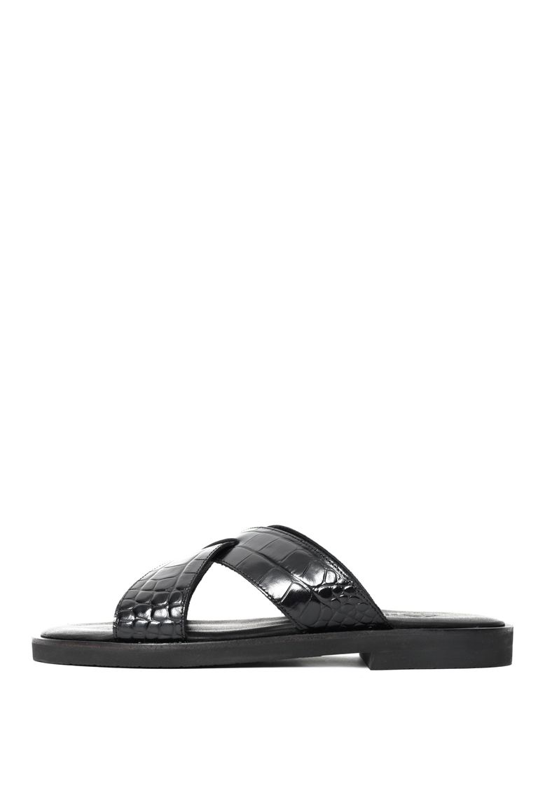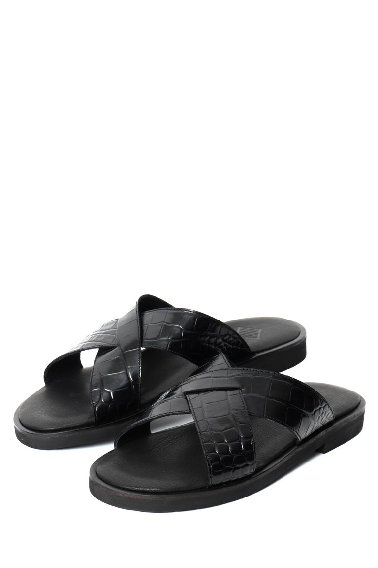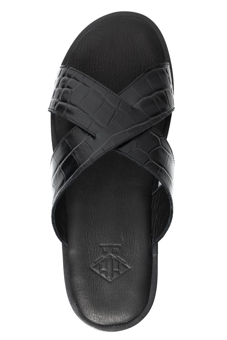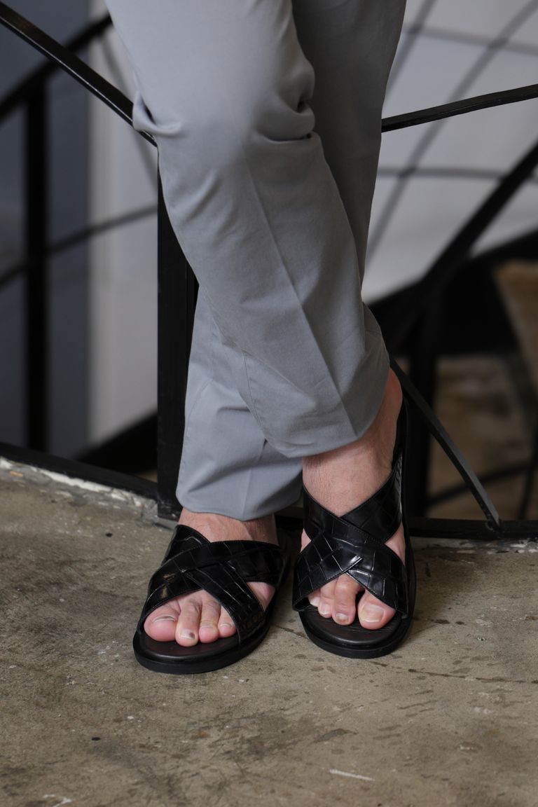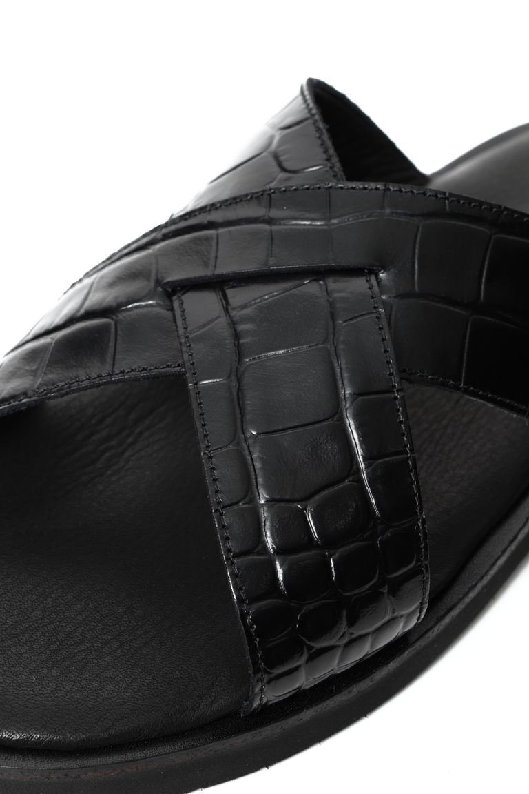 《BEKKU HOMME 完全別注》【ふにゃ男シリーズ】クロコダイルスタンプ クロスストラップ コンフォート レザー サンダル / ブラック