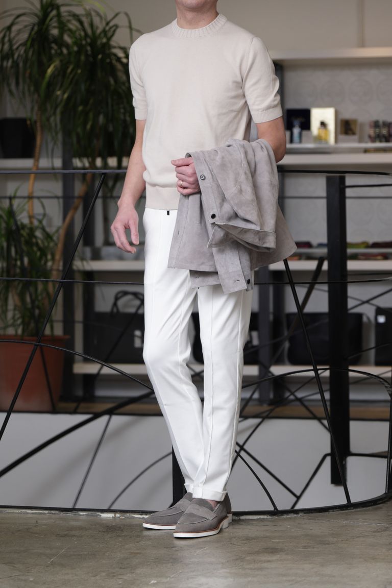 【干場義雅氏 別注モデル】H DUE アッカデュエ 永久クリース ジャージーパンツ / ホワイト