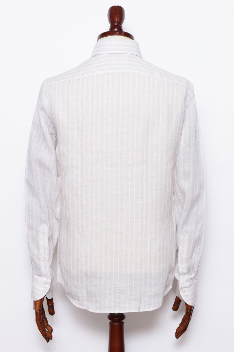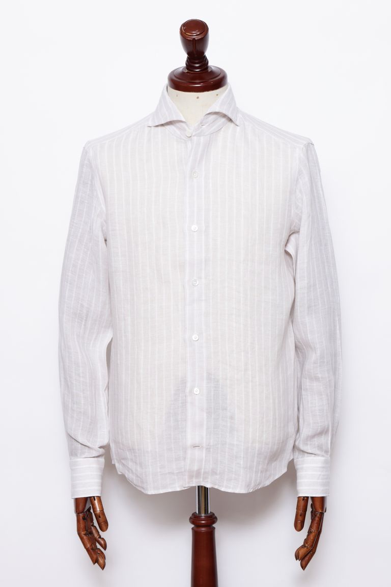 Vinci Fit ウォッシュド ストライプリネン カッタウェイカラー シャツ / ライトベージュ