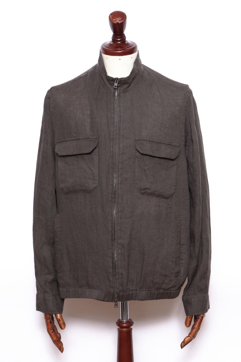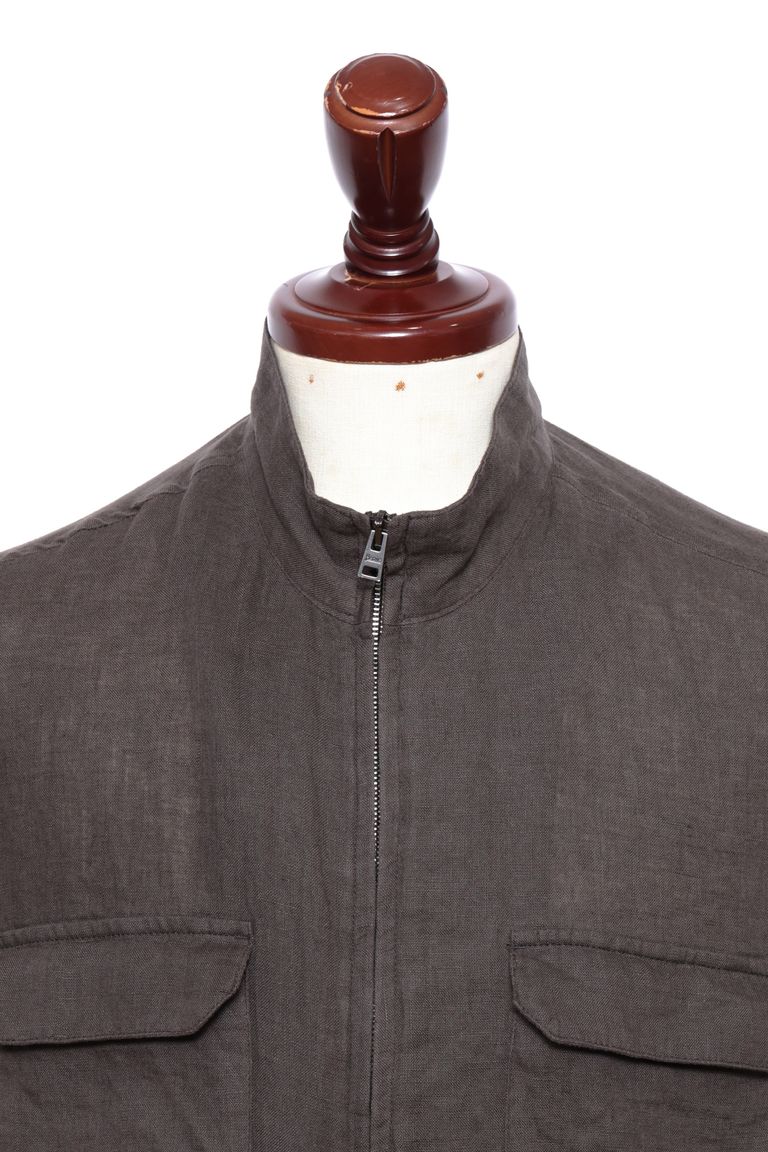 GI000647U ウォッシュドリネン ジップアップ ブルゾン / ブラウン 8800