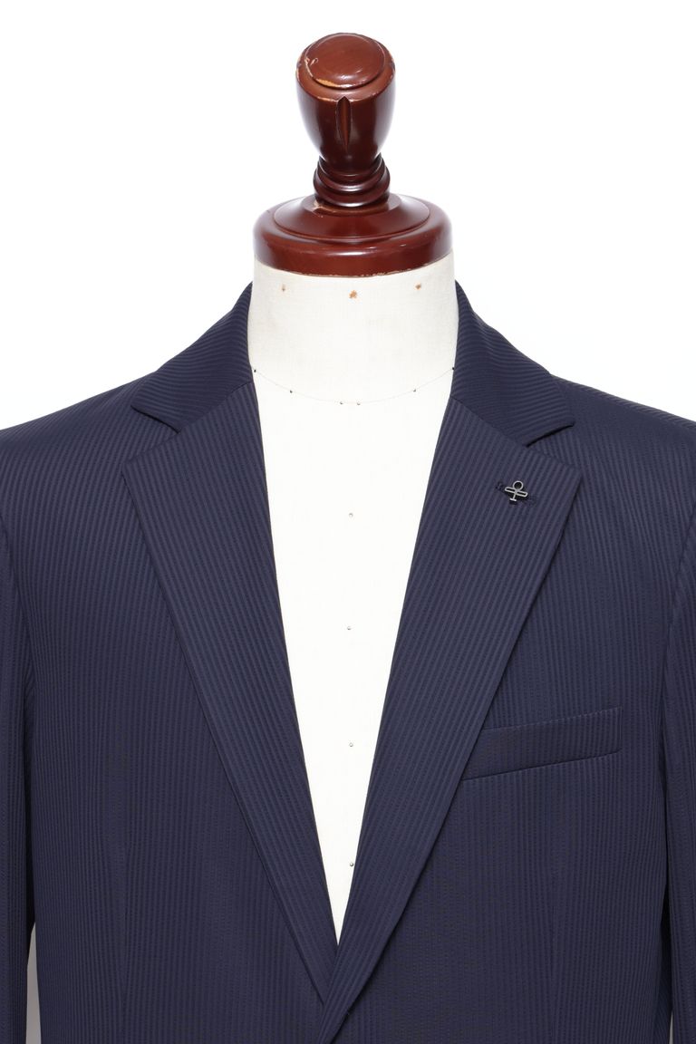 【セットアップあり】ストレッチ ナイロン ジャージ シアサッカー 2B ジャケット / ネイビー