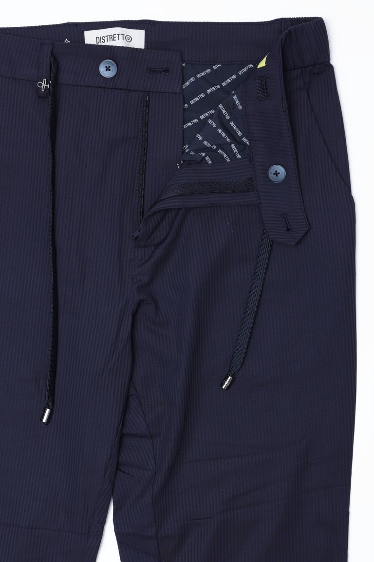 【セットアップあり】ストレッチ ナイロン ジャージ シアサッカー 1プリーツ シャーリングパンツ / ネイビー