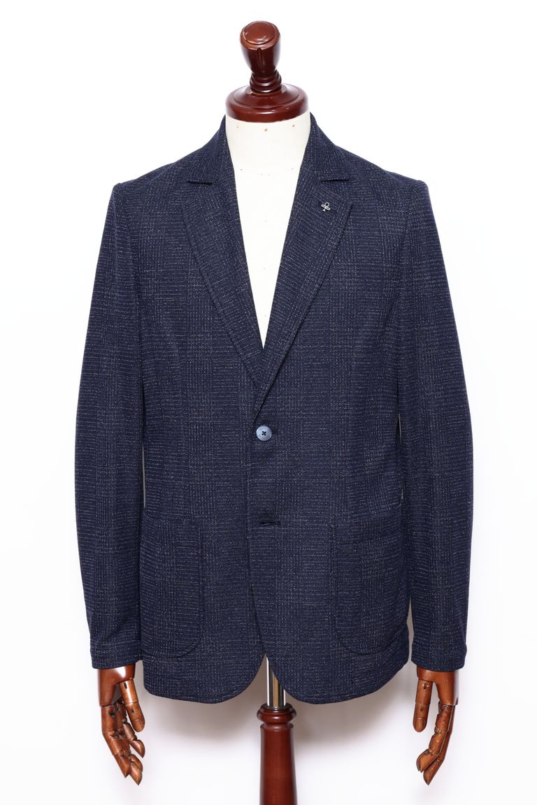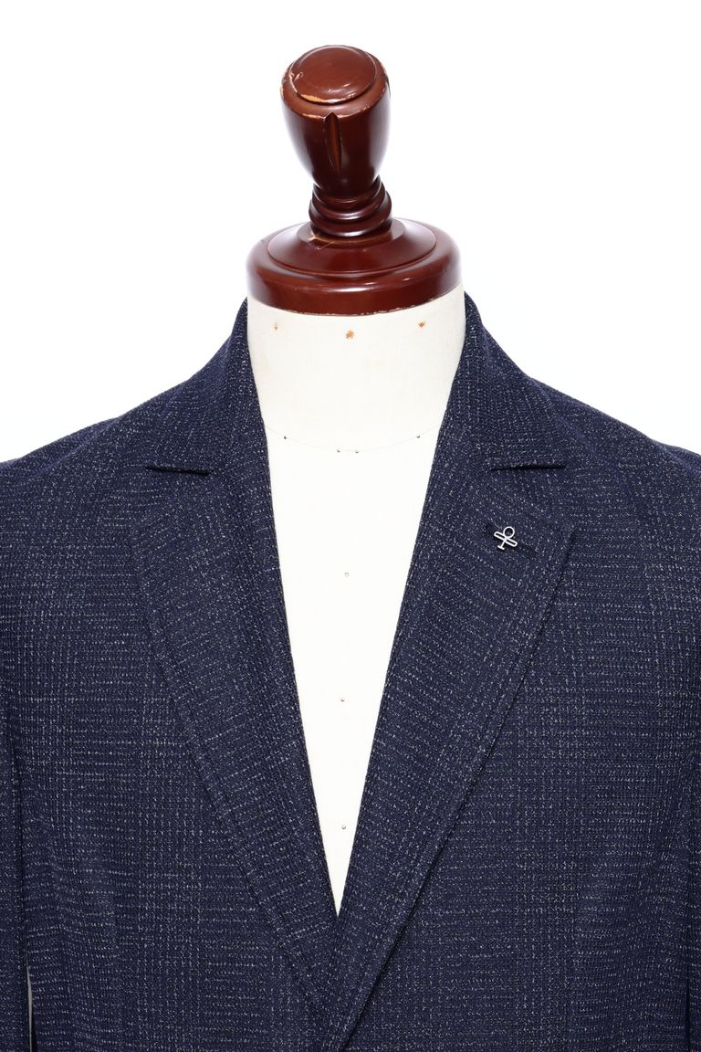 ストレッチ ジャージ シャドーチェック 2B ジャケット / ネイビー