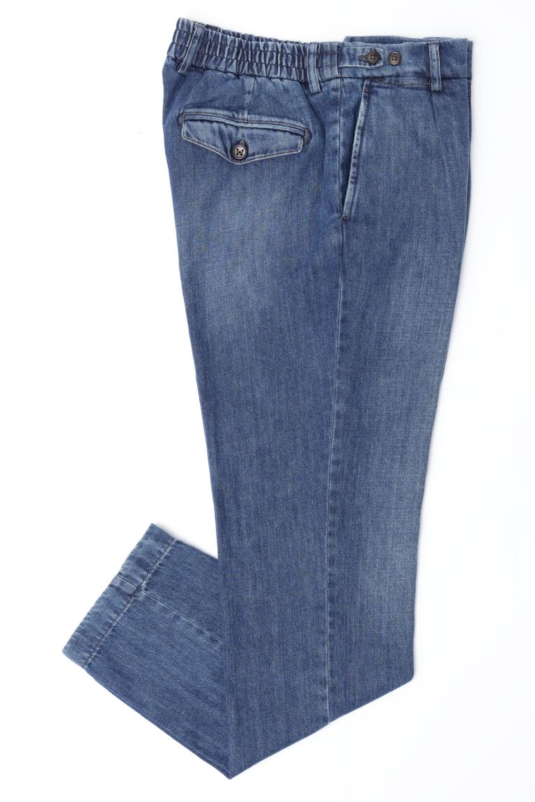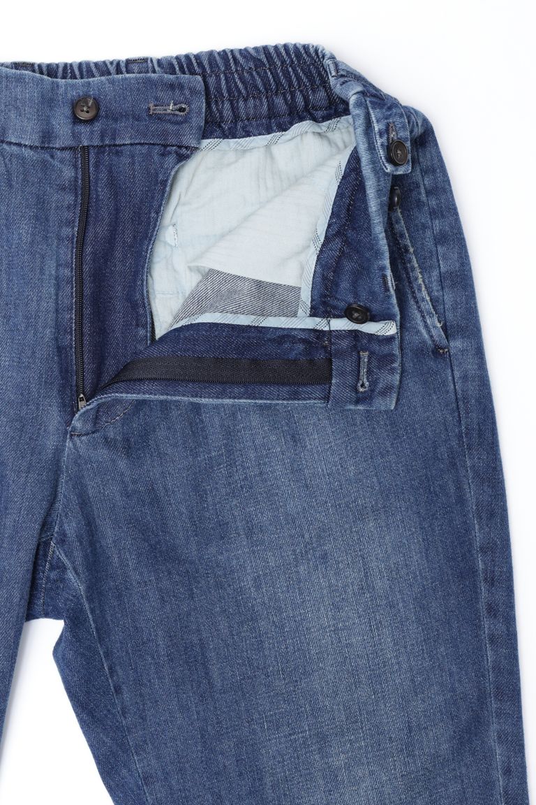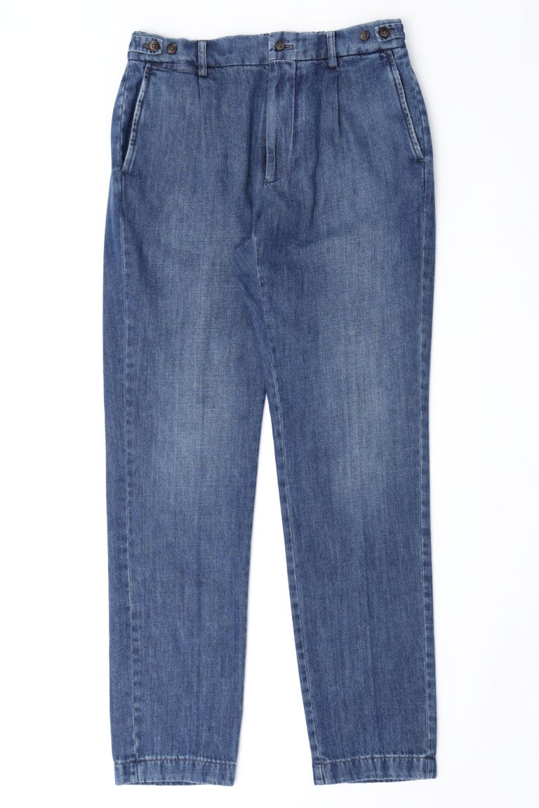BERTO GD DNM ベルト デニム生地 1プリーツ バックシャーリング テーパードパンツ / インディゴブルー