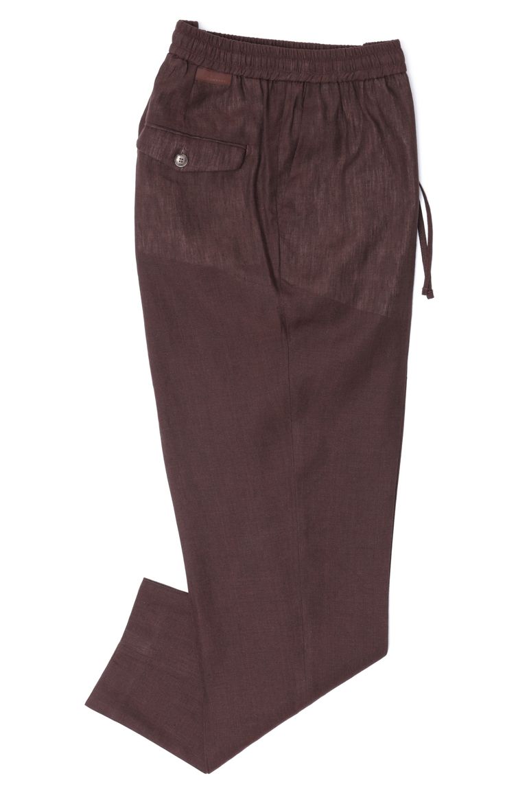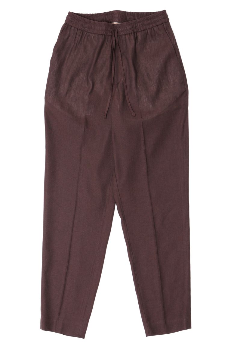 リネンレーヨン スラブ フルシャーリング ドローコード付き イージーパンツ / ブラウン
