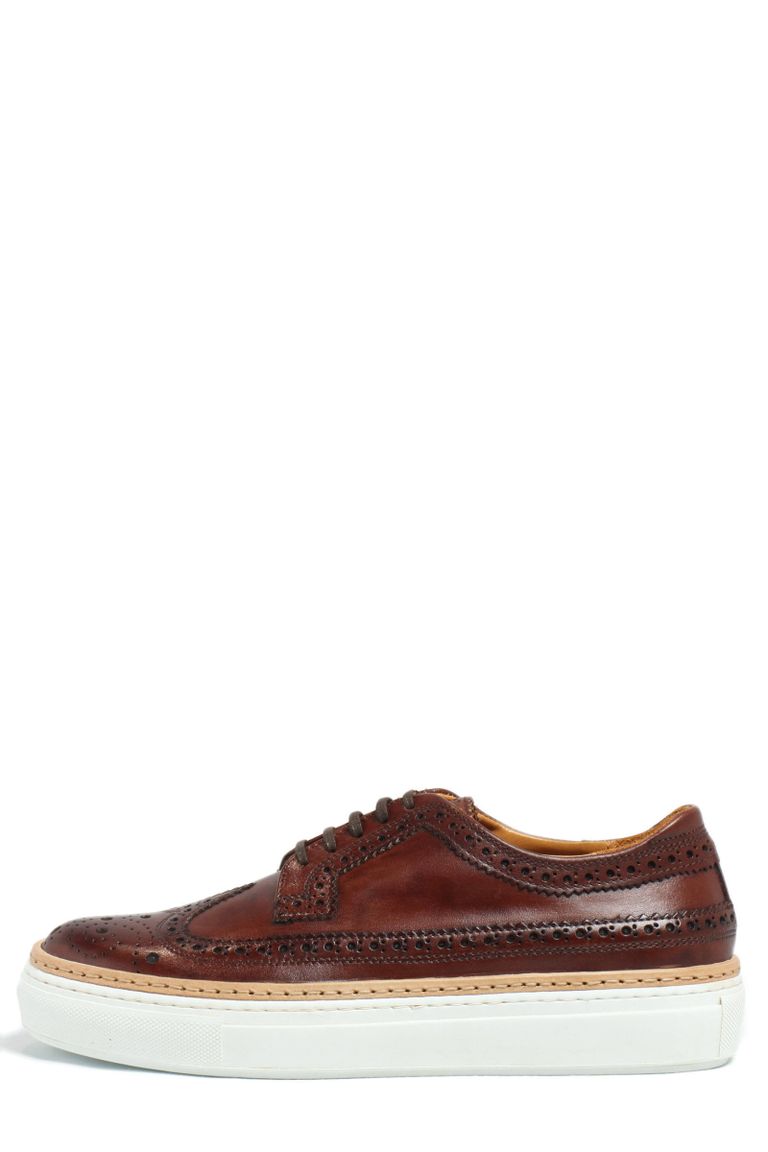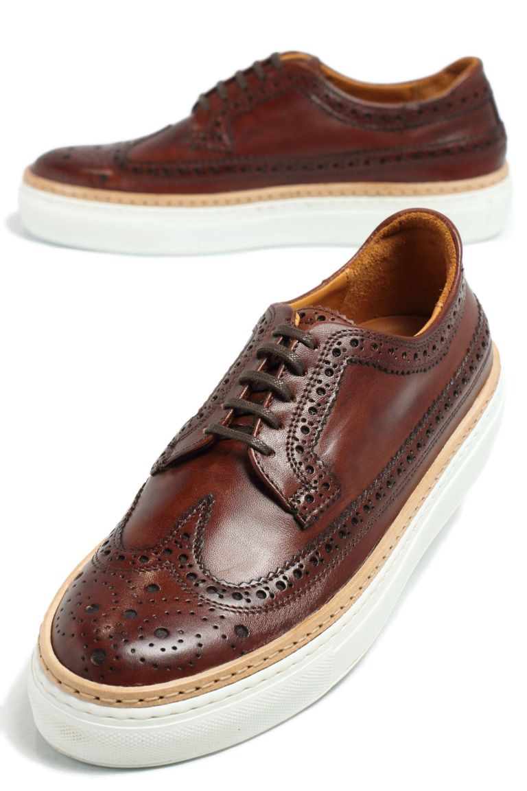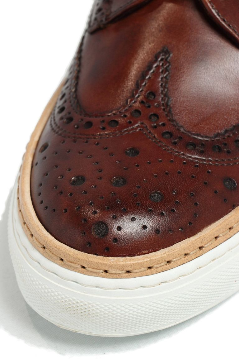 CLUB HOUSE フルブローグ パティーヌ カーフレザー ローカット ハイブリッド スニーカー / ダークブラウン